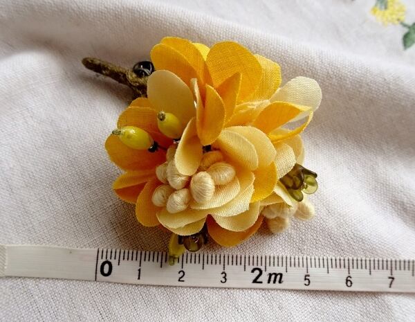 花の部分のサイズは直径5センチほどの小ぶりなコサージュです。