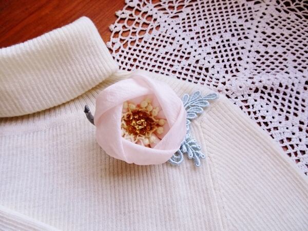 シルバーグリーンのケミカルレースでアクセントをつけました。