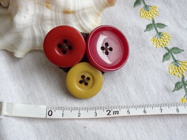 赤と黄色のボタンのブローチ | webshop 工房nona