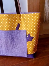 ポケットや猫のアップリケは画像ですと青みがかっていますが実際にはもう少し赤みがかった紫です。