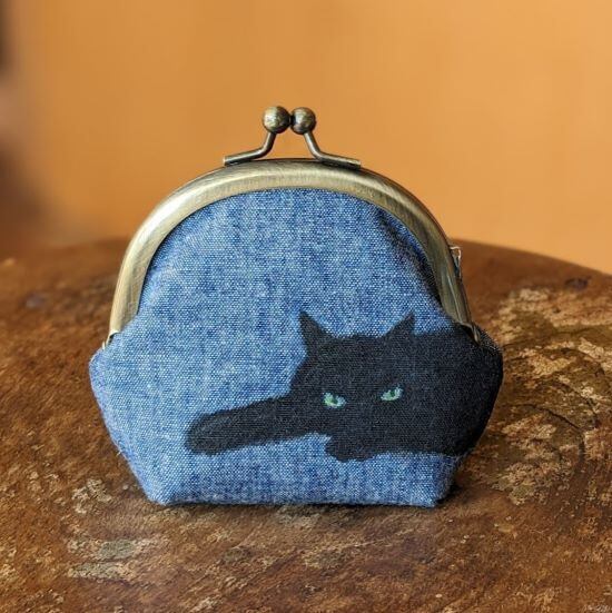 小さいがま口 だらける黒猫