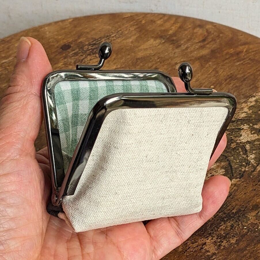 手のひらサイズのがま口タイプ小銭入れです。