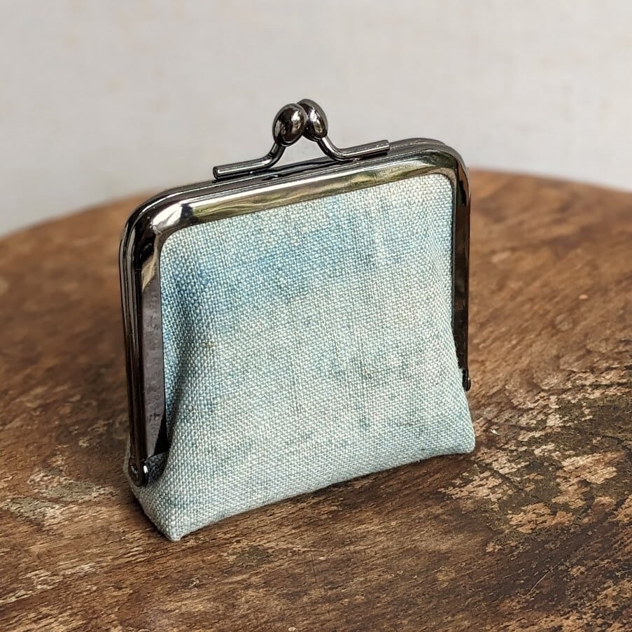 四角いがま口タイプの小銭入れ こそっとのぞき見黒猫